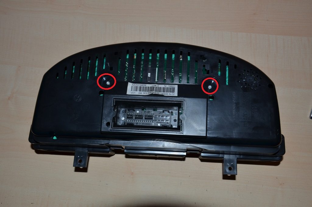 Als erstes muss das Kombiinstrument geöffnet werden. Dazu die zwei Schrauben an der Rückseite lösen.